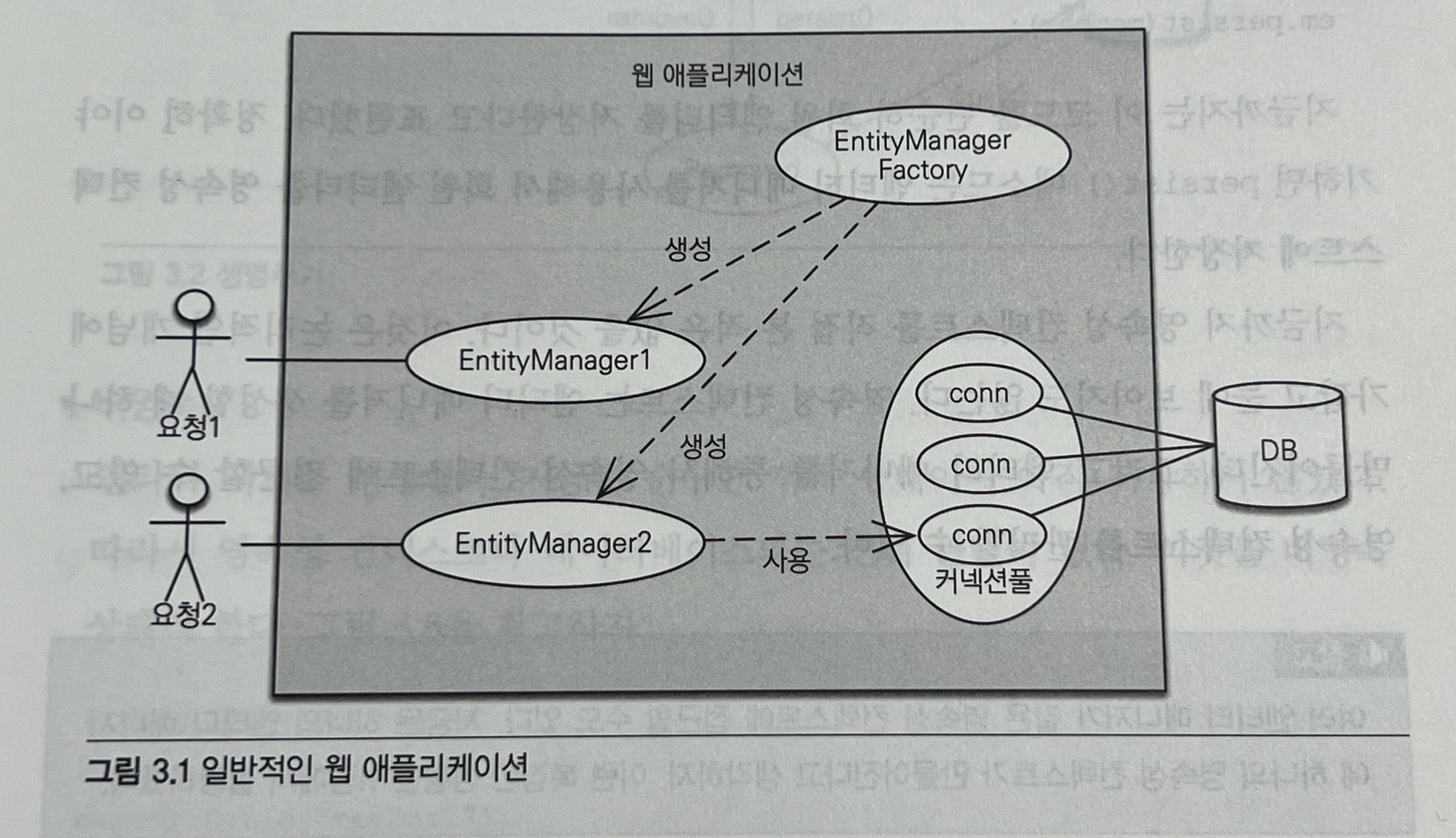 책 제목: 자바 ORM 표준 JPA 프로그래밍저    자: 김영한📌 목차1장) JPA 소개2장) JPA 시작3장) 영속성 관리- 3.1 엔티티 매니저 팩토리와 엔티티 매니저 ✅- 3.2 영속성 컨텍스트란? ✅- 3.3 엔티티의 생명주기 ✅- 3.4 영속성 컨텍스트의 특징 ✅4장) 엔티티 매핑5장) 연관관계 매핑 기초6장) 다양한 연관관계 매핑7장) 고급 매핑8장) 프록시와 연관관계 관리9장) 값 타입10장) 객체지향 쿼리 언어11장) 웹 애플리케이션 제작12장) 스프링 데이터 JPA13장) 웹 애플리케이션과 영속성 관리14장) 컬렉션과 부가 기능15장) 고급 주제와 성능 최적화16장 트랜잭션과 락, 2차 캐시📌 엔티티 매니저 팩토리와 엔티티 매니저JPA 제공 기능엔티티와 테이블을 매핑하는 설계 부분매..